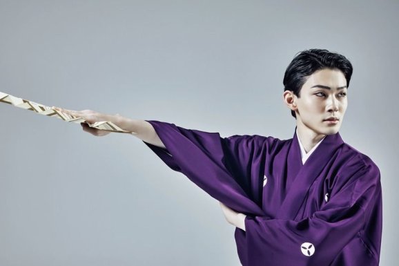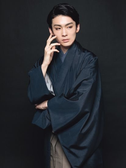 Вырос в семье потомственных актеров кабуки, известной еще со времен Эдо.