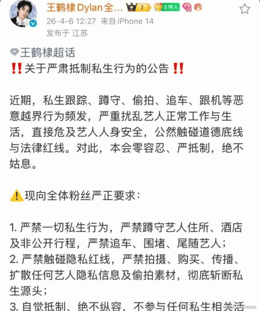 В связи с этим была объявлена политика нулевой терпимости и категорического неприятия подобных действий. Фанатов призвали строго соблюдать правила, не нарушать личные границы и бойкотировать поведение "сасэн". Также были озвучены меры наказания для нарушителей: в серьёзных случаях – пожизненный БАН на всех официальных мероприятиях, а в случаях, подпадающих под уголовную ответственность, сотрудничество со студией для привлечения к законной ответственности. Поклонников актёра попросили соблюдать меру в обожании своего кумира, придерживаясь разумных правил и вместе создавая благоприятную и уважительную атмосферу для всех фанатов.